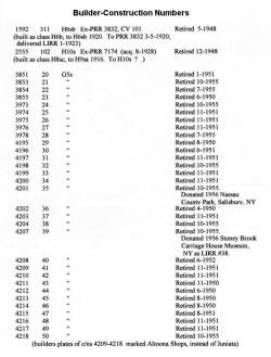 Roster of LIRR H10s engines, previous PRR number, build date and builder: |