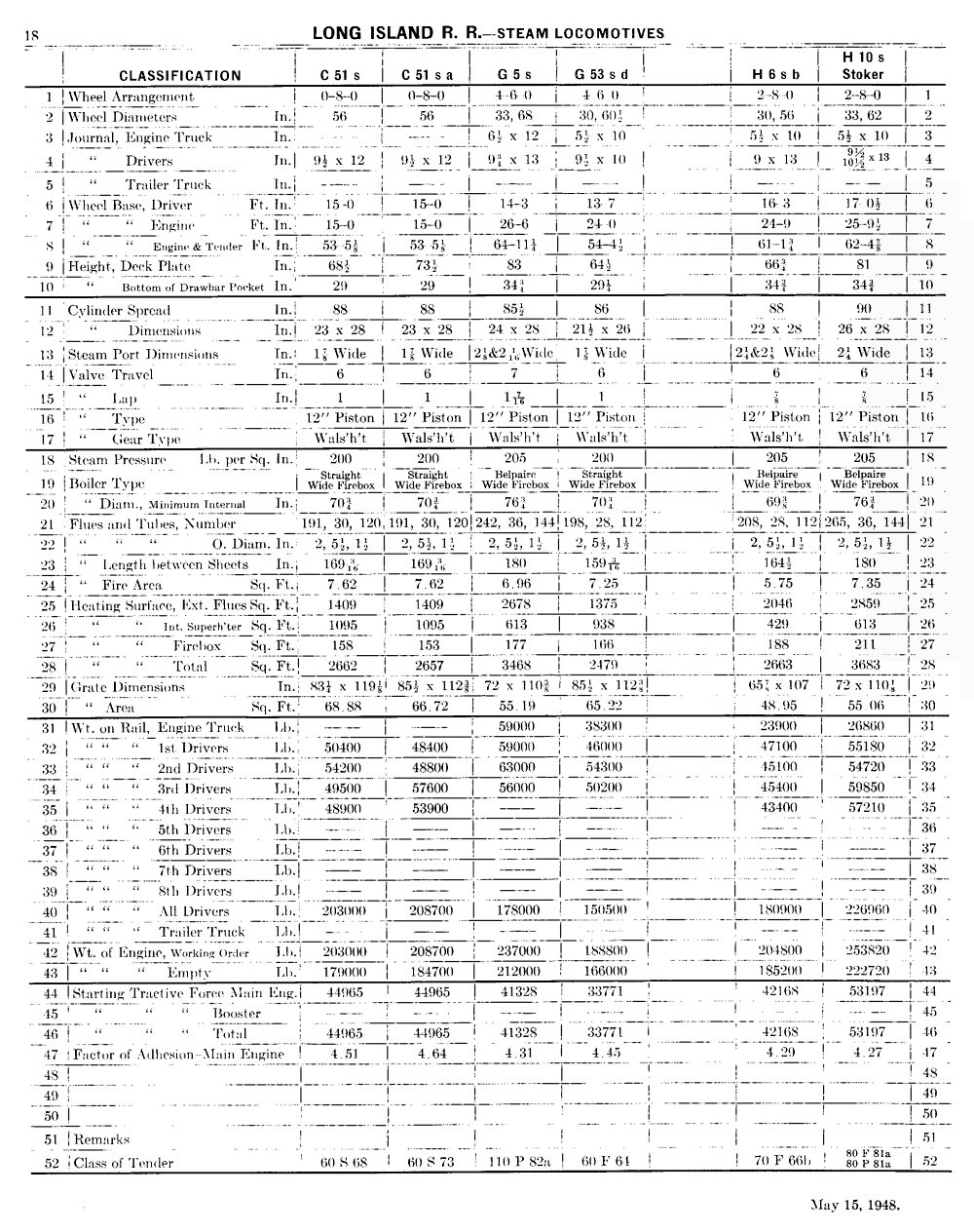 LIRR/PRR Classification Locomotives/Tenders - Form 109-J - 5/15/1948 -