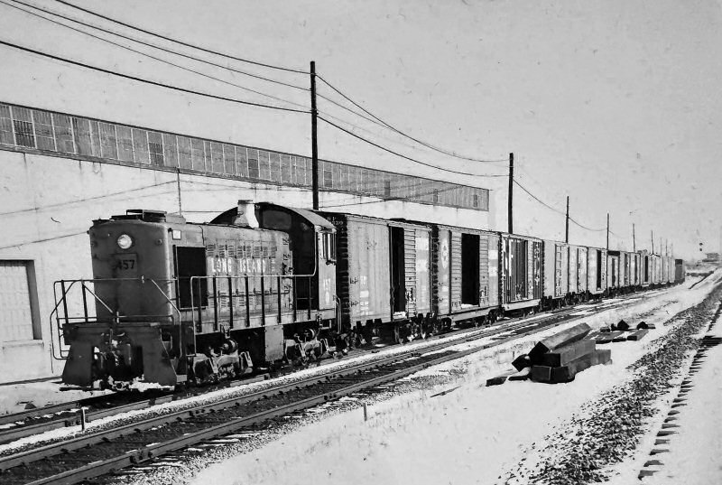 ![]() RS2's 1519 and 1520 switching out Georgia Pacific plywood, east of Jericho Turnpike near Syosset. 1973 - Photo/Archive: Richard Glueck ![]()