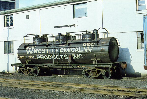 ![]() LIRR Yard A "Stink Track" LI City, NY West Chemical 3 dome tank car GATX 70487 1/1972 Photo: Frank Szcahacz The phenols were shipped to LI City by tank car resulting in some transfer spillage at the siding. These materials have a very unique and sharp odor, which would have been noticeable by the yard workers. |