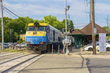 ![]() LIRR #607 at Nassau Tower, Mineola view E c.mid-1990's Photo/Archive: A. Joseph Daly |