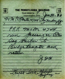 Form 19 PRR Gas Car #4744 - Sag Harbor 1/20/1933 |
