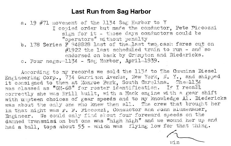 Note: "Sag Harbor to Y" meant the train was cleared to run westbound