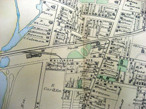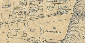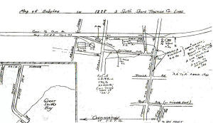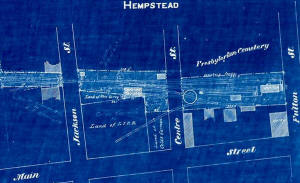 Babylon engine house and turntable original location west of the depot. 1888 Hyde map