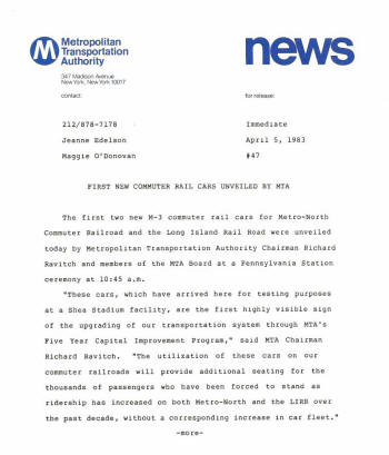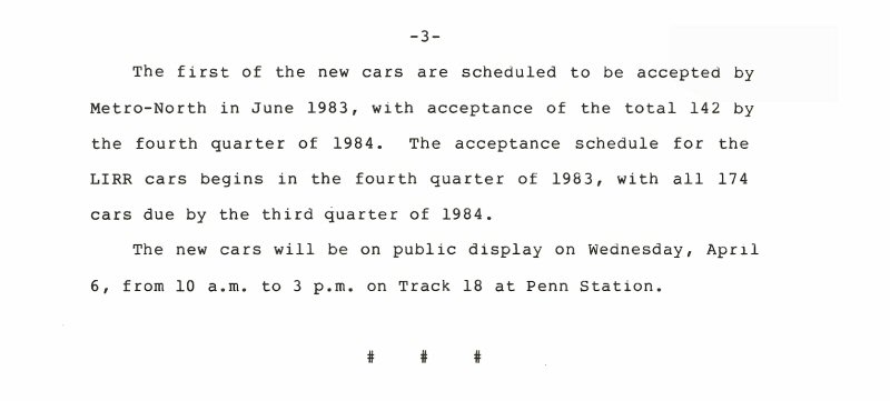 1986 with 142 M3As (8000-8141) produced for Metro North, arriving between