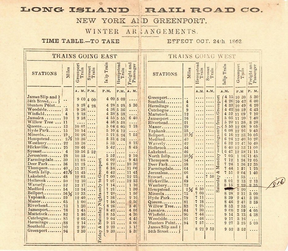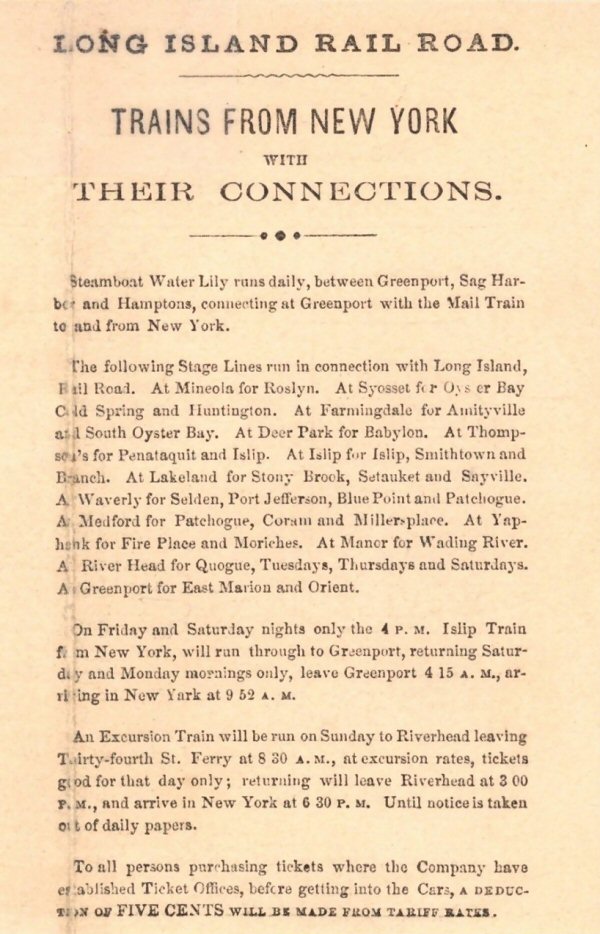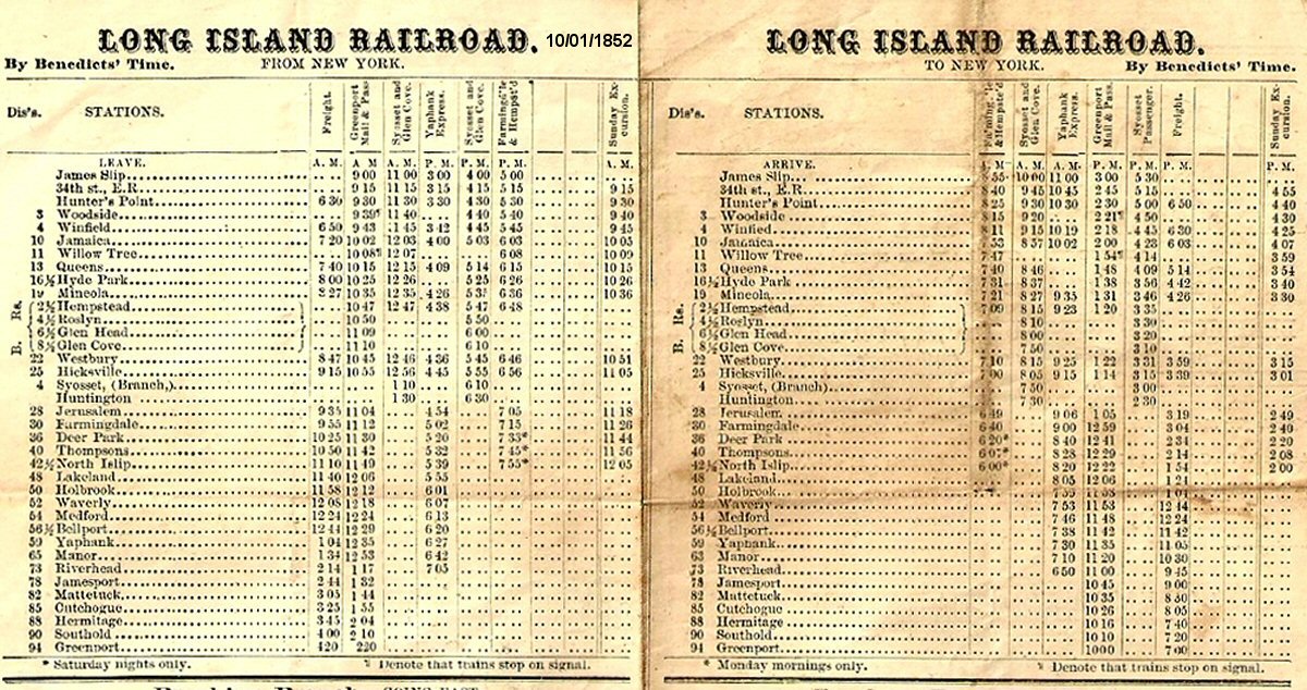 ![]() Long Island Railroad Timetable - 10/01/1852 Archive: Art Huneke