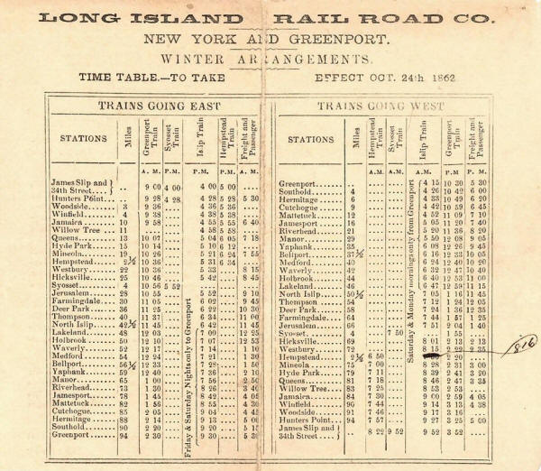 LIRR Timetable - 10/04/1867 | LIRR Timetable - c.1870 | ||||