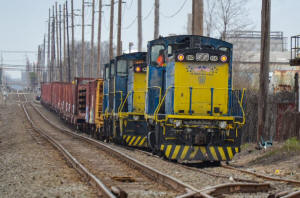 Extra 172, with MP15AC 172, towed a short gondola rail train from MO