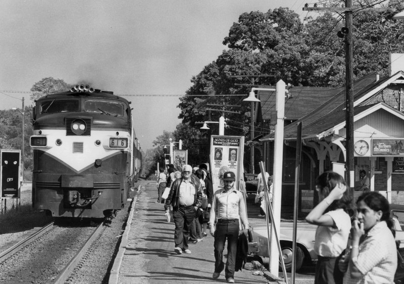 ![]() Brentwood GP38 #263 Electrification in place with fencing in place between old station platform and tracks. New station in service (9/14/87) further east. 1/17/1988 Photo: Edward Hand |