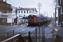 ![]() MU Double Deck & Train eastbound at N. Grove St. crossing, Freeport View W - Summer 1959 Archive: Dave Keller |