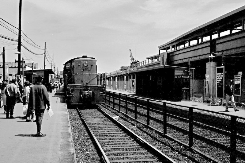 ![]() Zoomed-in view of the old Merrick Station looking east from the pedestrian crossover of the temporary station facilities in c. 1968. (Dave Keller archive)