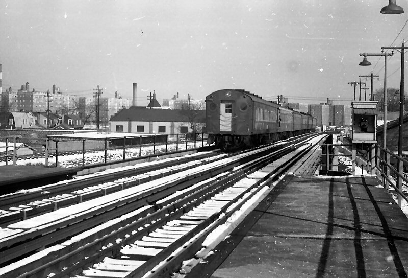 ![]() Far Rockaway Yard MU REA #1205 at Express House Mott Ave. View NW 8/09/1952 (Faxon-Keller) |