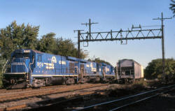 LIRR C420 #229 Conrail GE B23-7 #2805 Fresh Pond Interchange c.1985