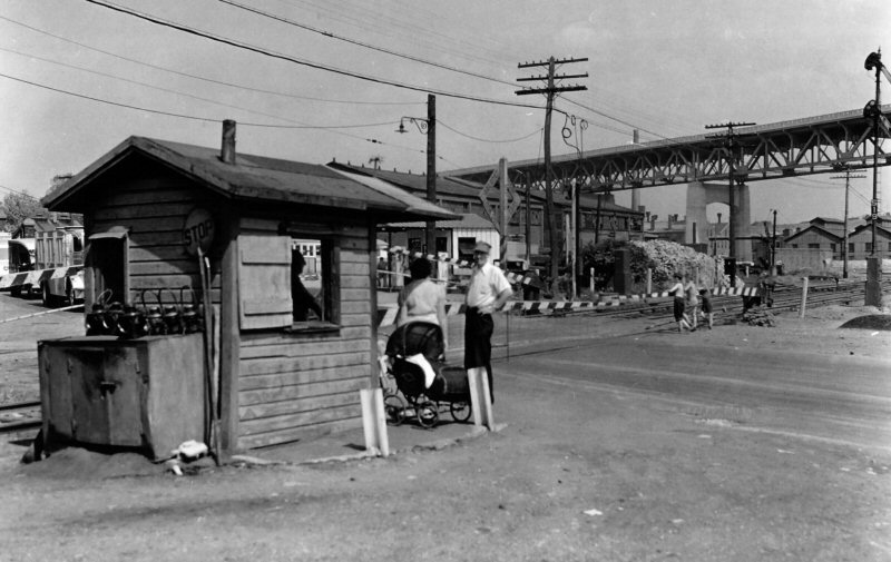 ![]() "Dead Man's Curve", so named because of the many workers who were killed by oncoming trains while crossing the tracks to and from work at the "Laurel Hill Works" View west of 46th St./ Employees crossing
