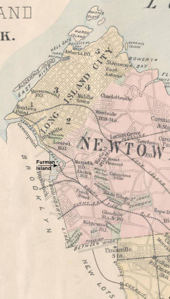 ![]() Newtown Creek - Furman's Island - Queens County map -1891 Archive: Don Mawsey |