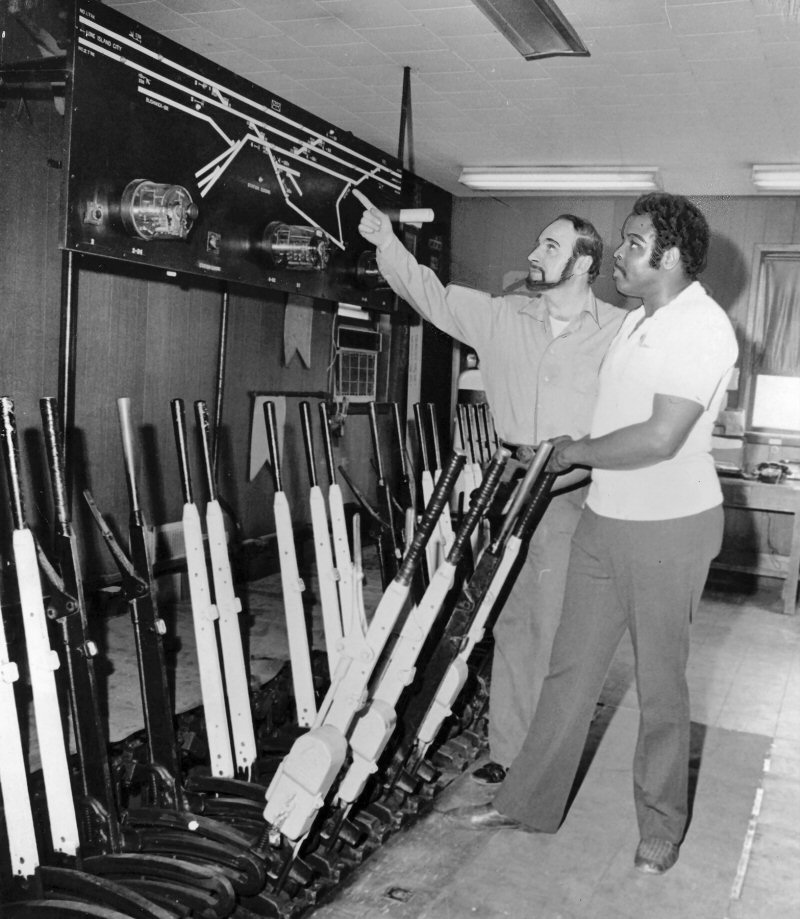 ![]() VAN Tower interlocking machine and model board Vanderbilt Ave. Yard, Brooklyn - 4/1978 Wm. Madden photo, Dave Keller archive |