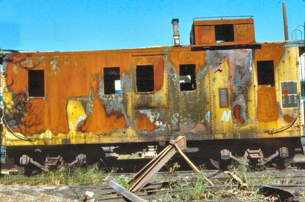 The two caboose in the bottom of photo are ex-IC #9847 and #9782 side door arrivals in the their