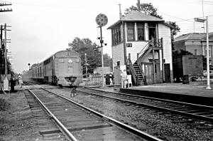 FM CPA20-5 #2002 eastbound Port Jefferson train catching orders at "DIVIDE" Tower,