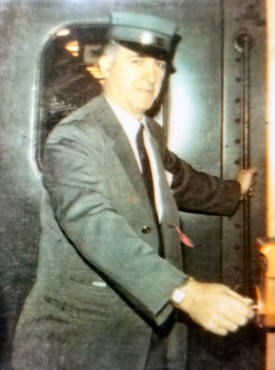 ![]() Conductor Fred Villacci at Malverne Station in May, 1973 |
