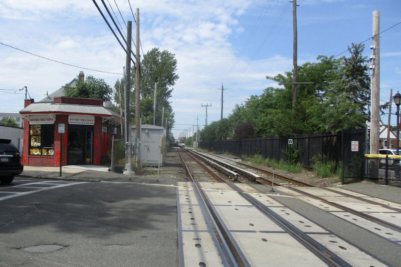 ![]() Centre-Ave., Lynbrook - View N former low platform gone - 8/14/2025 Photo/Archive: Dave Morrison |
