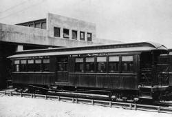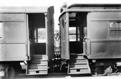 #1379 had the passenger end of the car photographed on November 9, 1933. There were subtle differences in the end details of headend MU cars. Note the large scissors-like apparatus that operated the doors at this time; also note the cowcatcher or pilot behind the coupler and in front of the trucks, removed in the 1950's with the advent of speed control. Collection of Ron Ziel. |