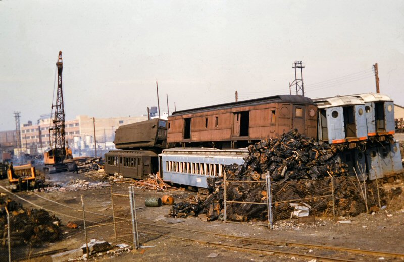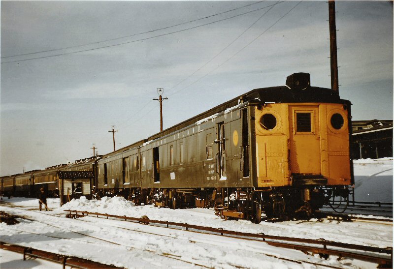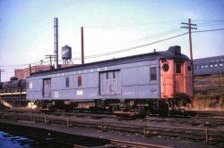 4209-4210 were originally Since these cars had, on each side, a double baggage door of 8 feet at the left and a single 6-foot door, the other side of the car--the one that is shown in this photo--is the rarely seen 8-foot double-door side. 1209 was modernized in February 1960, becoming 4209;1210 was modernized in June 1960, becoming 4210. When USPS RPO service ended in 1965, most RPO cars were scrapped but these two cars were used from July 1965 to July 1969 around Dunton to act as goats and move dead MU cars around between the shops, nearby Johnson Avenue Yard and Yard D on the other side (north) of Jamaica station where MU trains were put together, broken up and stored. Research: Mike Boland |