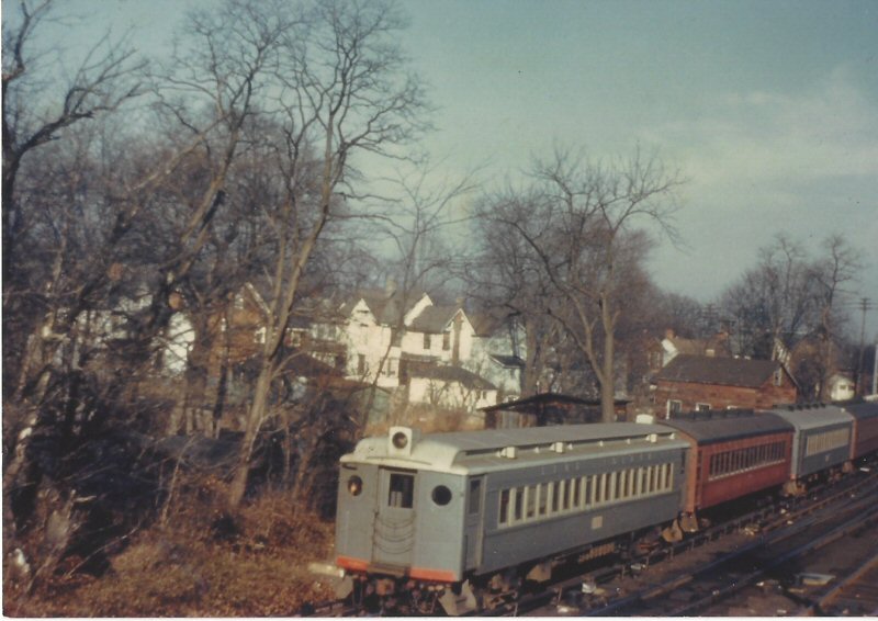 ![]() MU Express Mail train at Babylon: MBM62, MPBM54, MPB54 taken from the high platform at the Babylon freight house just west of Carll Avenue. ViewNE. (Votava-Keller)