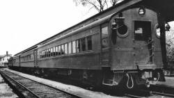 Look for the mail compartment on the two MBM62's, and that will tell you whether it's a MBM62 or a straight MB62. The MB62's have two windows between the doors and a small window at each end of the car. It's a different look for the MBM62's, a fascinating car and almost as unique as the second car in this consist, an MPBM54. The second car is a Motorized Passenger Baggage Mail MPBM5 car and both sides of the car are a little different in the