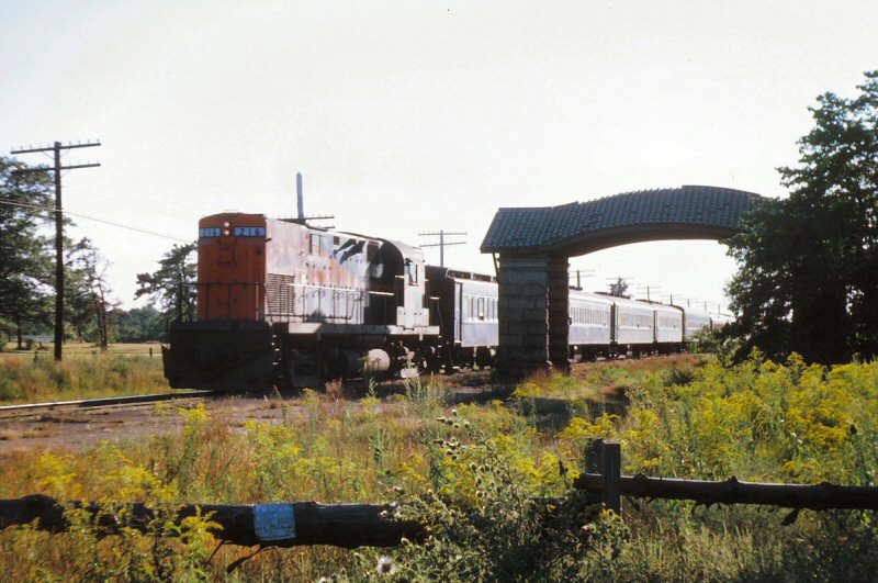 ![]() GP38-2 #253 westbound flying through Republic Station in June of 1985. The station will be soon closed with the coming Main Line electrification to Ronkonkoma project. Photo/Archive: Jay Bendersky |