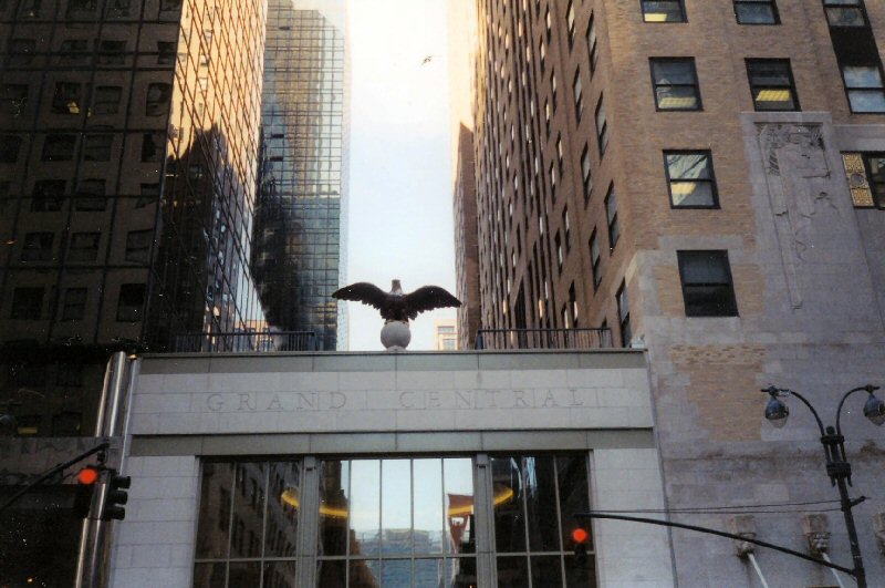 This is the eagle that is now over the Lexington Ave entranceway. It was placed there by the MTA because it was a new entranceway and thus did not impinge upon the building's landmark status. Photo mid 1990s. | |