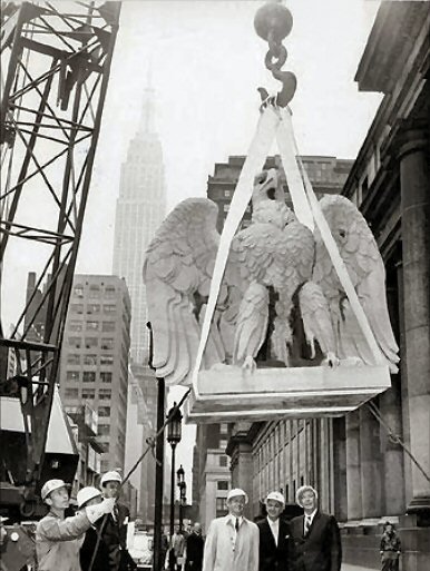 ![]() Hoisting of the eagle onto the rooftop. Photo: "Courtesy of Cooper Union" |