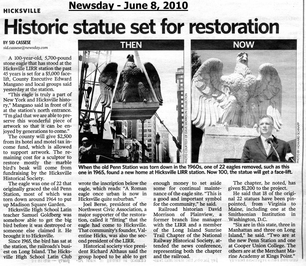 One of the two original stone eagles outside the current station. They adorned the original Penn Station. This is to the right of the station's current 7th Ave. entrance. 9/11/2010 Photo: Al Castelli |