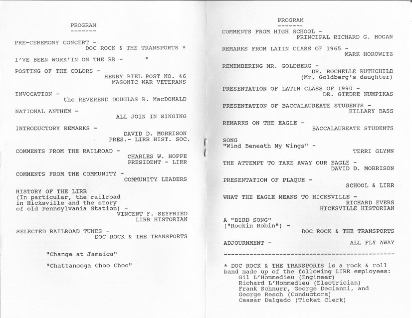 ANNIVERSARY CEREMONY BOOKLET LONG ISLAND RAIL ROAD HISTORICAL SOCIETY/HICKSVILLE HIGH SCHOOL May 15, 1990 |