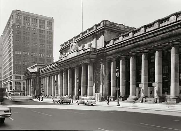 ![]() The other stone eagle on the left of the Penn Station entrance. Note its real feathered companion. 9/11/2010 Photo: Al Castelli