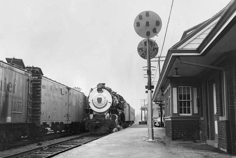 in this c. 1952 view looking east. At the left is the freight house with