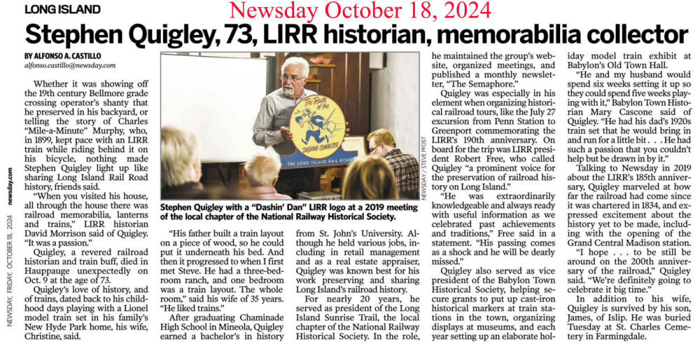 This page is dedicated to the memory of Steve Quigley as a friend, mentor, and his life long passion for LIRR history...