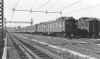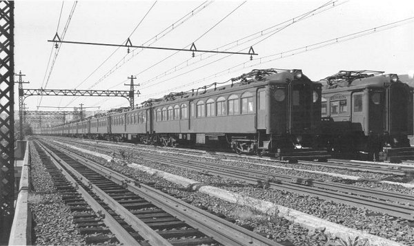 ELECTRIC TRAINS BEING STORED IN YARD AFTER LINE
