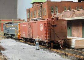 ![]() Dropping a boxcar of LCL (less-than-carload) freight for the local consignees. |