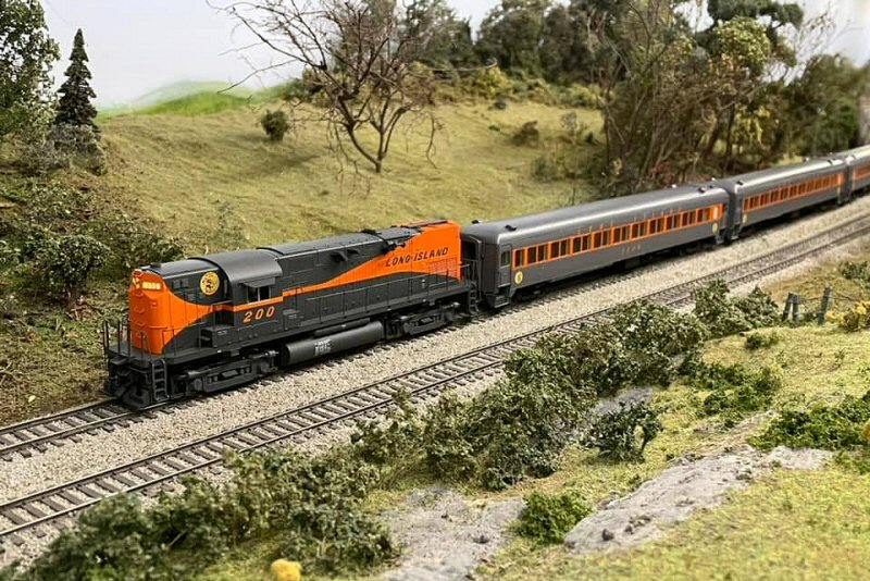 ![]() Atlas LIRR #221 C-420 leading an Island Modelworks P-72 coach commuter run out of the yard |