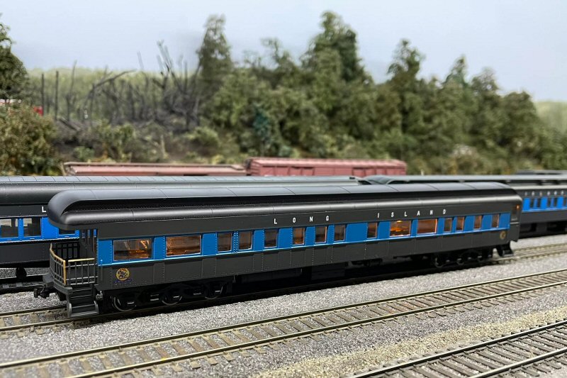 ![]() LIRR heavyweight observation parlor cars. This is a Bachmann model. Since no one makes the correct model, the Bachmann one is a close match to both prototypes |