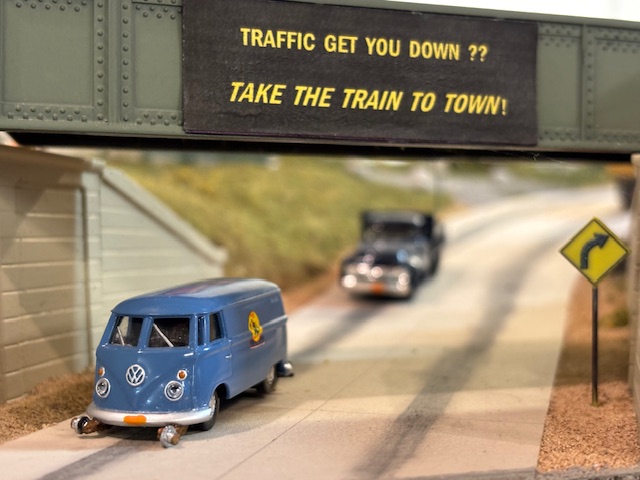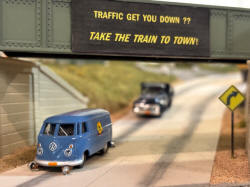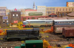 ![]() LIRR RS-1 #467, with horns blaring, thunders through a crossbuck protected only private road as it makes its way eastbound toward Montauk in 1966. Engine: HO Atlas Classic, Coaches: Custom painted Con-Cor |