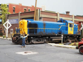 ![]() Brakeman Mario performing double duty halting Halsey St. traffic as LIRR S2 #450 works Bienenfeld Glass. |