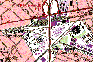 ![]() Cranford Junction, NJ map & photos of the western interchange of the NY&W; ![]() Arthur Kill Lift Bridge |