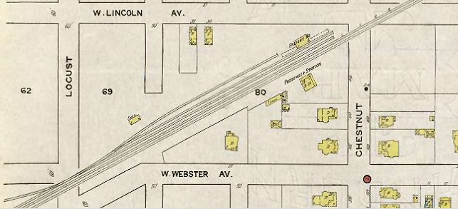 ![]() RVRR-LV interchange at Locust St. and W. Webster Ave., Roselle Park freight/passenger stations Sanborn Map - 1925 |