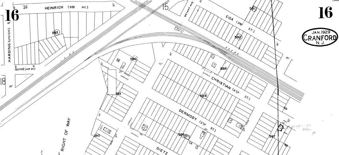 ![]() Sanborn map Cranford #16 LV - B&O (now SIRT) Interchange 1929 |